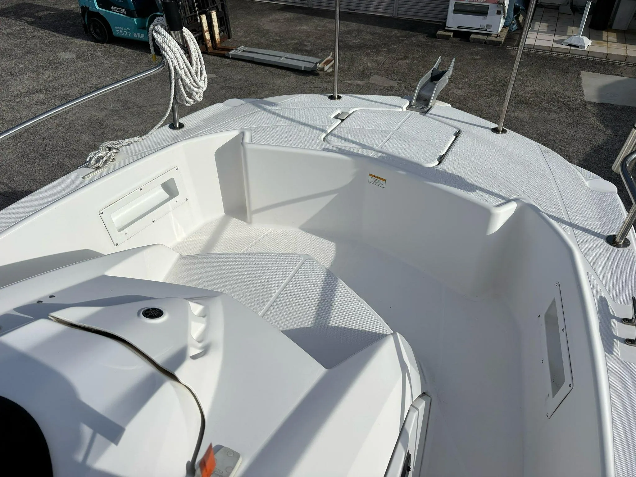 - 高さのあるバウレール、スタンレースにロッドホルダーも多数ありフィッシングに最適。