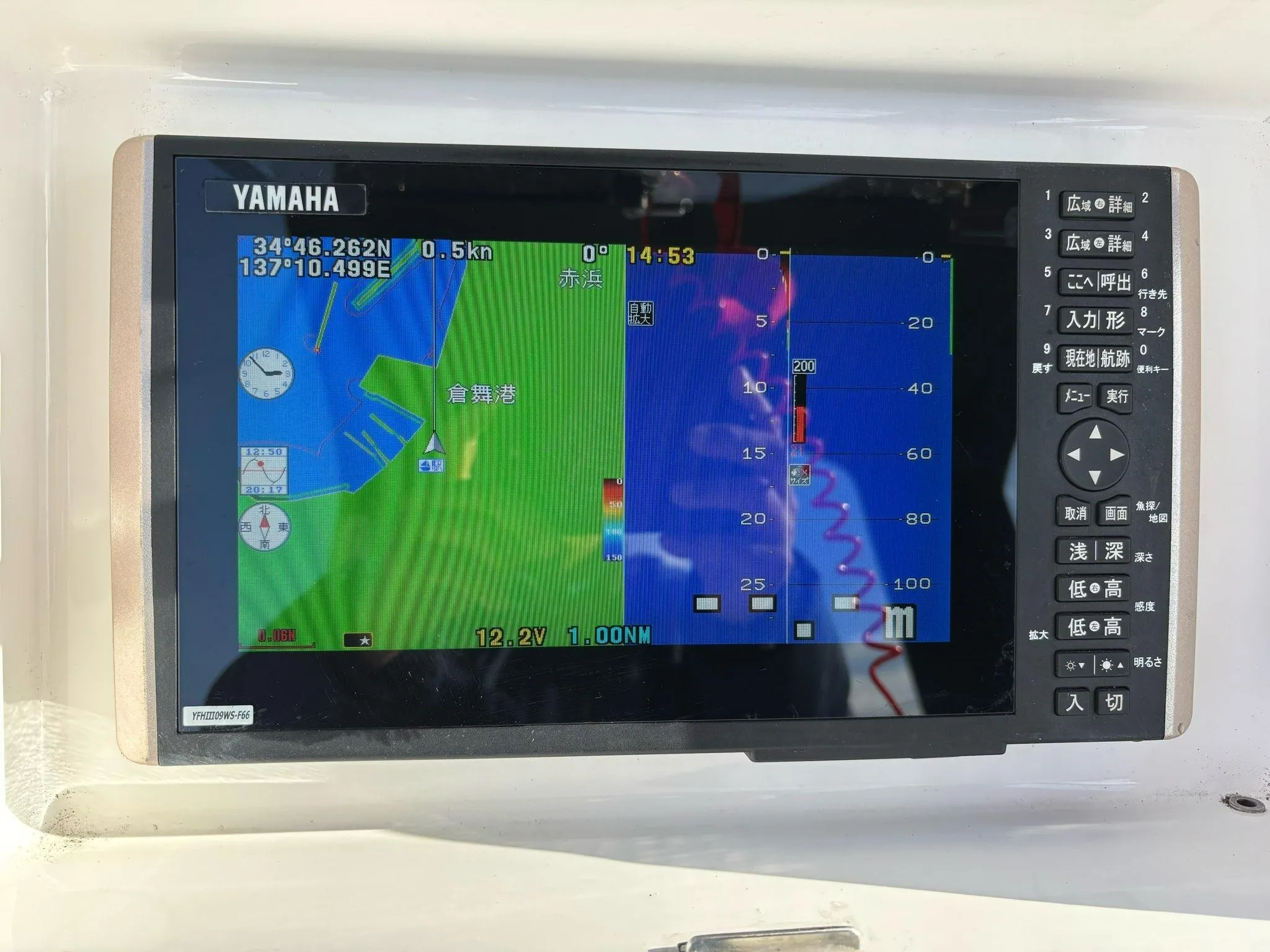- ヤマハGPS魚探(YFHⅢ09WS-F66)搭載、個室マリントイレにイケスも装備されています。